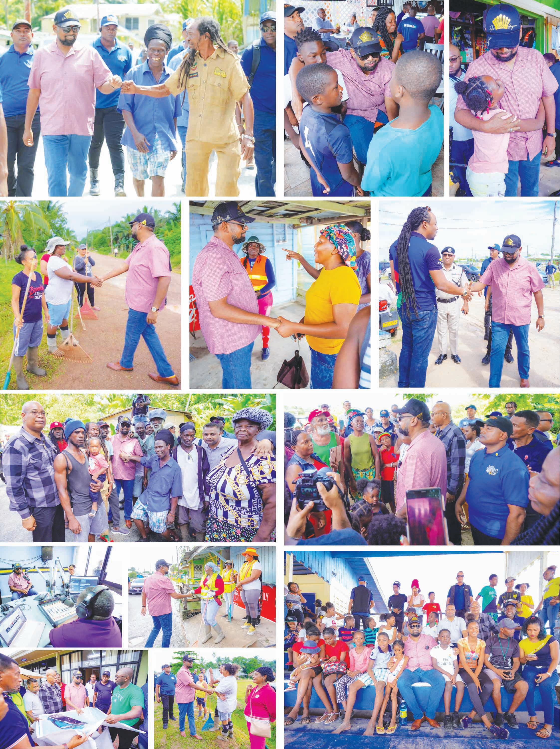 “What I’m doing today is what I’m doing across the country. We are going to people, meeting people, lis tening to people. Because one of the important pil lars of the Government now, is to ensure that we deliver what the people want and we understand what the people want… the Linden-Soesdyke road, we’re repaving that entire road. The loan has been approved, a few days ago,” the President revealed