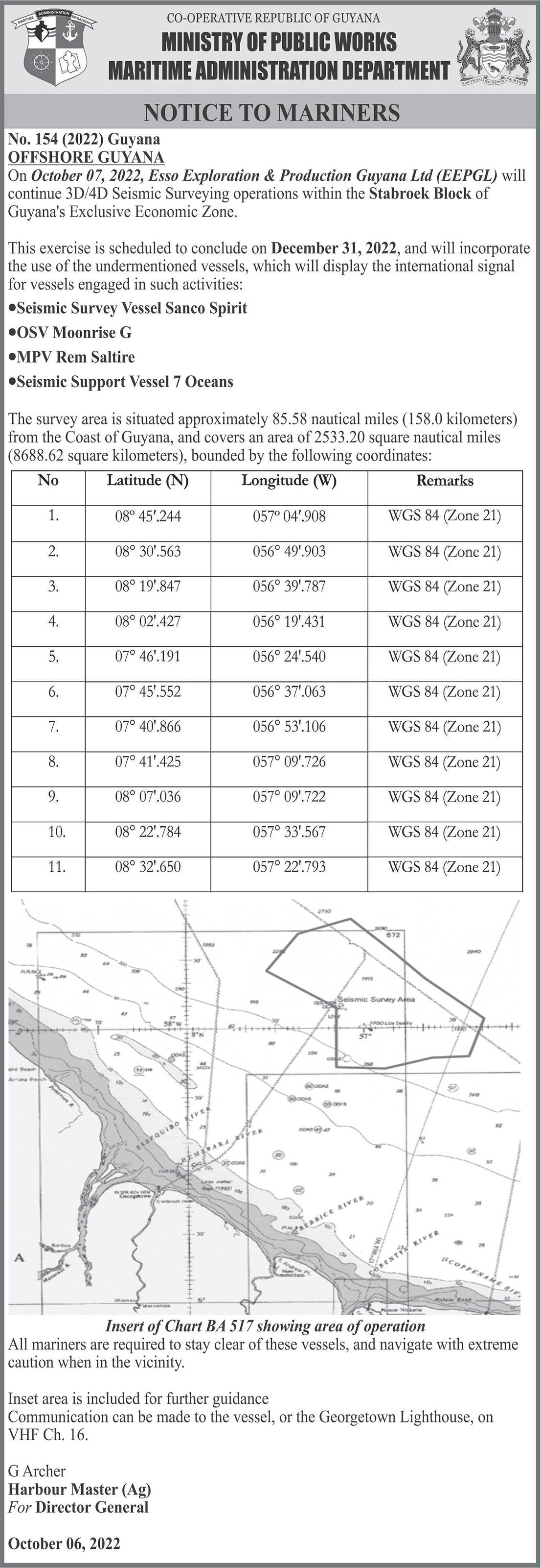 accidents. Thus, we implore the Government of Guyana to assiduously pursue the highly anticipated New Demerara River Bridge. It is evident that Guyana needs this project to allow for the passage of larger vessels which are required for the proper functioning of the oil & gas sector as well as the traditional ones.