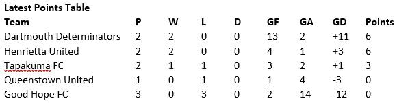 Sunday’s other match saw Henrietta United also notching up their second win in as many match es via a 2-0 margin over Tapakuma FC. Both goals