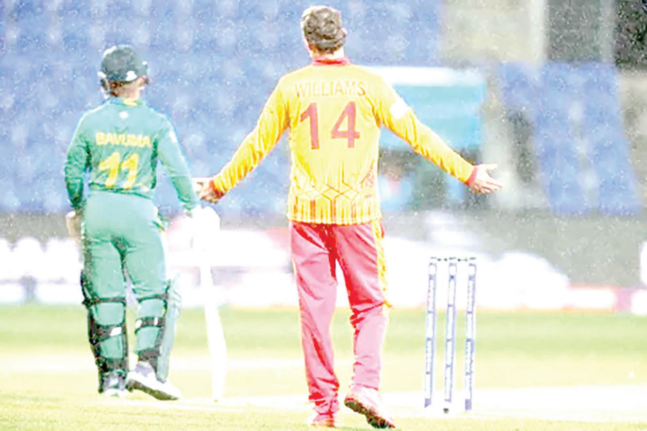 (ESPNcricinfo)South Africa were de nied a victory in their T20 World Cup open er after rain ensured their shortened fixture against Zimbabwe could not be com pleted. After a two-hourand-35-minute delay, the match was reduced to nine overs a side. Zimbabwe re covered from being 19 for 4 to set South Africa a tar get of 80, which was then cut down to a target of 64 in seven overs after an other weather interrup tion. South Africa were well ahead of their five-over DLS par score when the players went off for rain again, but they had only faced three overs at that point – a T20 match is only completed when both teams have faced at least five overs.