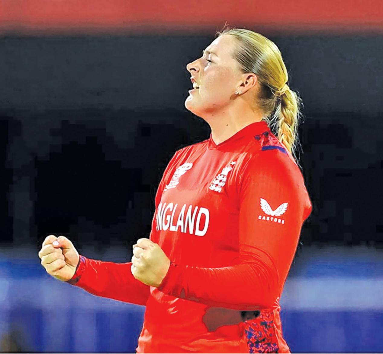 the scoring down through the middle overs. Ecclestone got the two biggest opposition wickets – bowling Laura Wolvaardt in the 16th over, before crashing another one into the stumps of an advancing Marizanne Kapp in the 19th over. She finished with figures of 2 for 15 from her four – the best returns in the game.