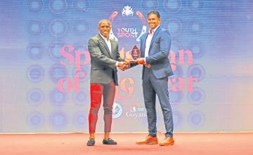 Alook of disbelief was formed on Desmond Amsterdam’s face when his name was announced as the Sportsman of the Year 2021-2022 at the National Sports Awards on Sunday night at the National Cultural Center (NCC).