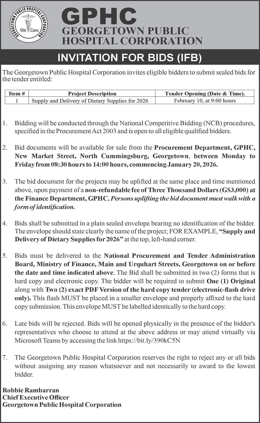 Dear Editor, I want to thank the Minister of Finance, Dr Ashni Singh, for presenting Budget 2026 to the National Assembly yesterday. I also want to thank the Government of Guyana for a budget that meets the needs of our most vulnerable citizens, such as young children, people with disabilities, and the elderly.
