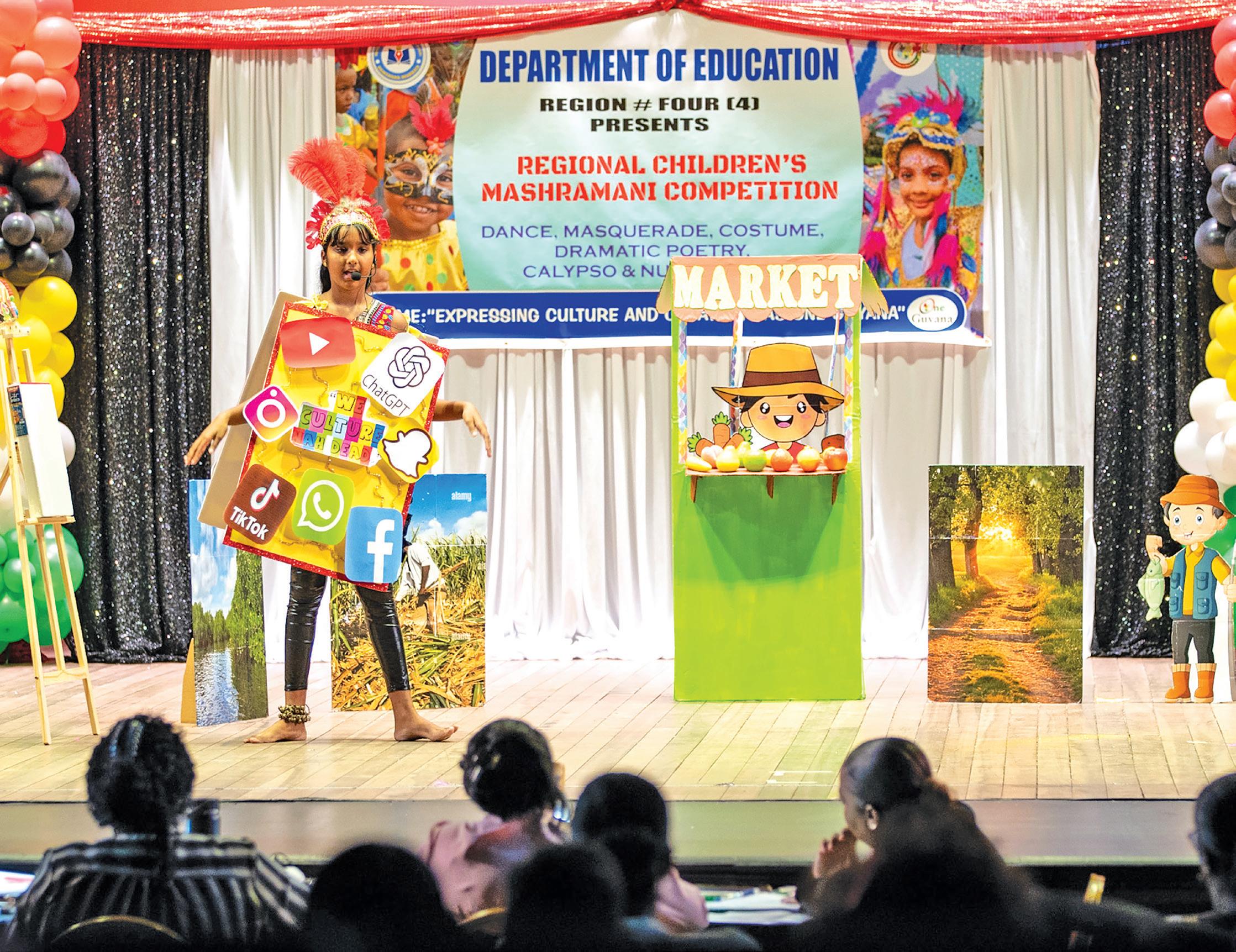 Chateau Margot Primary School student Vamika Persaud performing ''We culture nah dead'' during the Children's Mashramani Dramatic Poetry Competitions (8-10 age group) at the National Cultural Centre on Tuesday (Education Ministry photo)