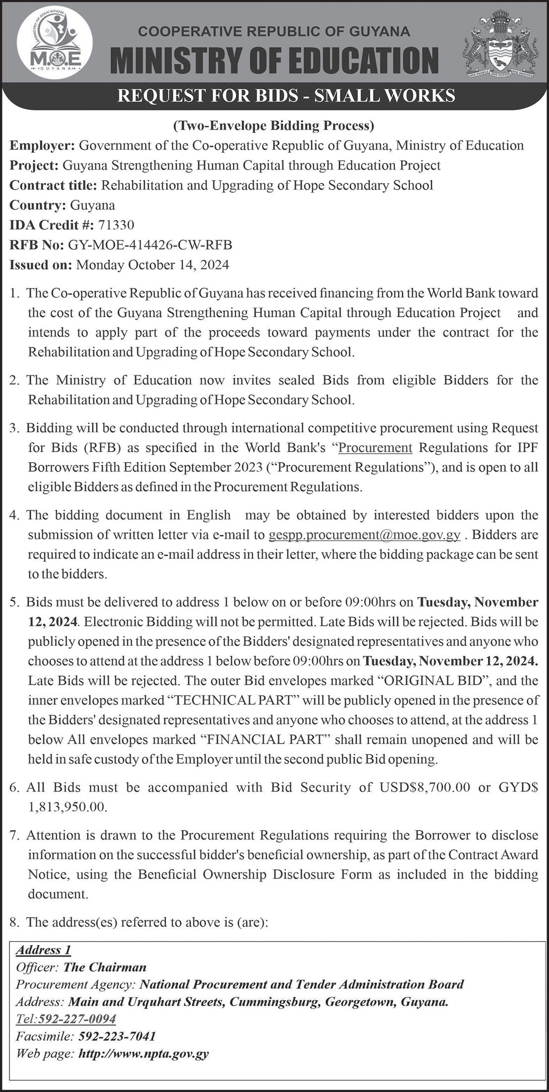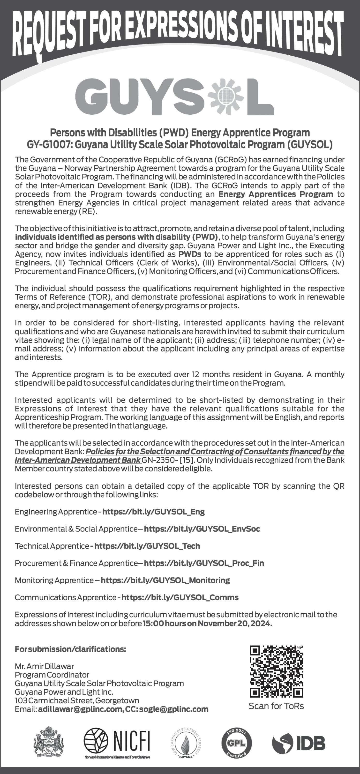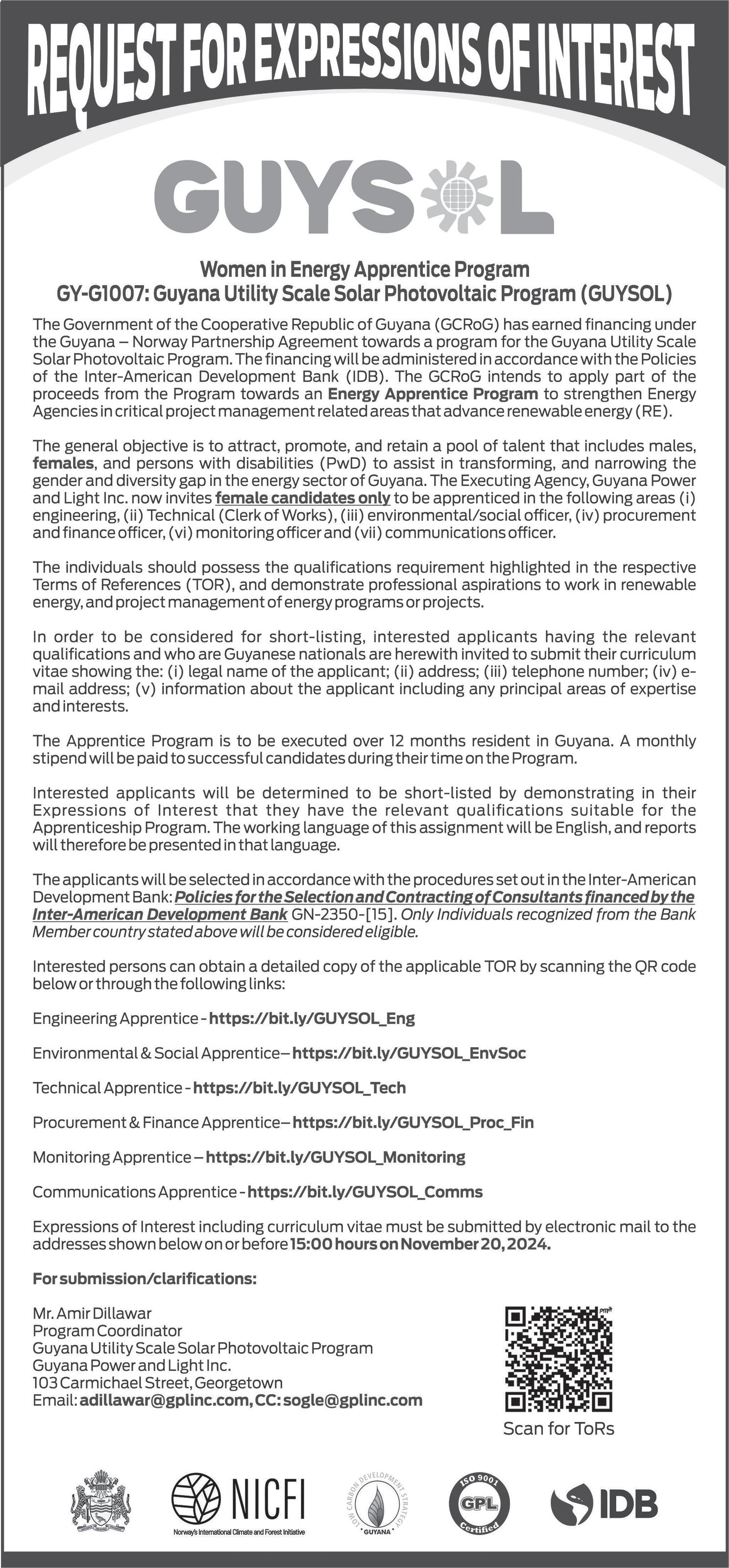 In 2024, the PPP Administration has made provisions for the expansion of training programmes offered for Caribbean Vocational Qualifications from 88 to 111 programmes. A new TVET policy for the medium term was also developed in the first half of 2024 to define and govern skills development systems for post-secondary, tertiary, formal, non-formal and informal sectors.