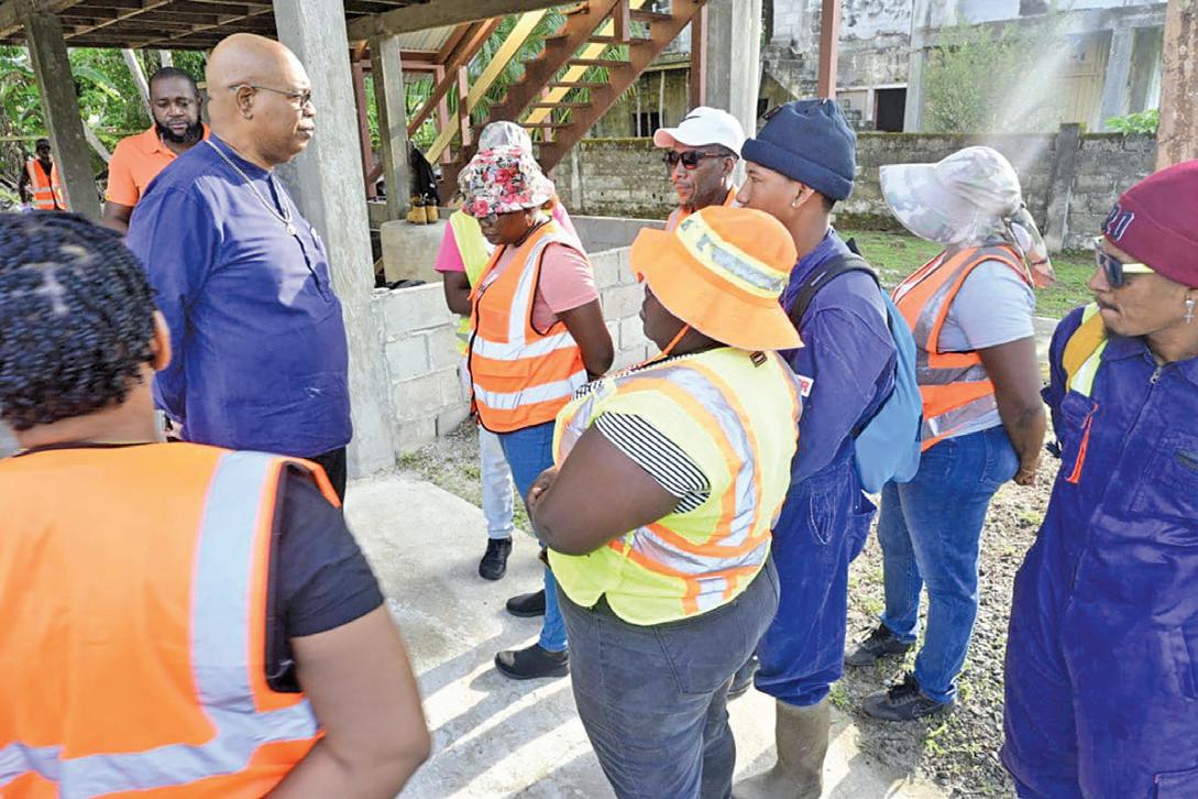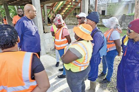 Public Works Minister Juan Edghill addressing Linden workers hired under the CIIP initiative