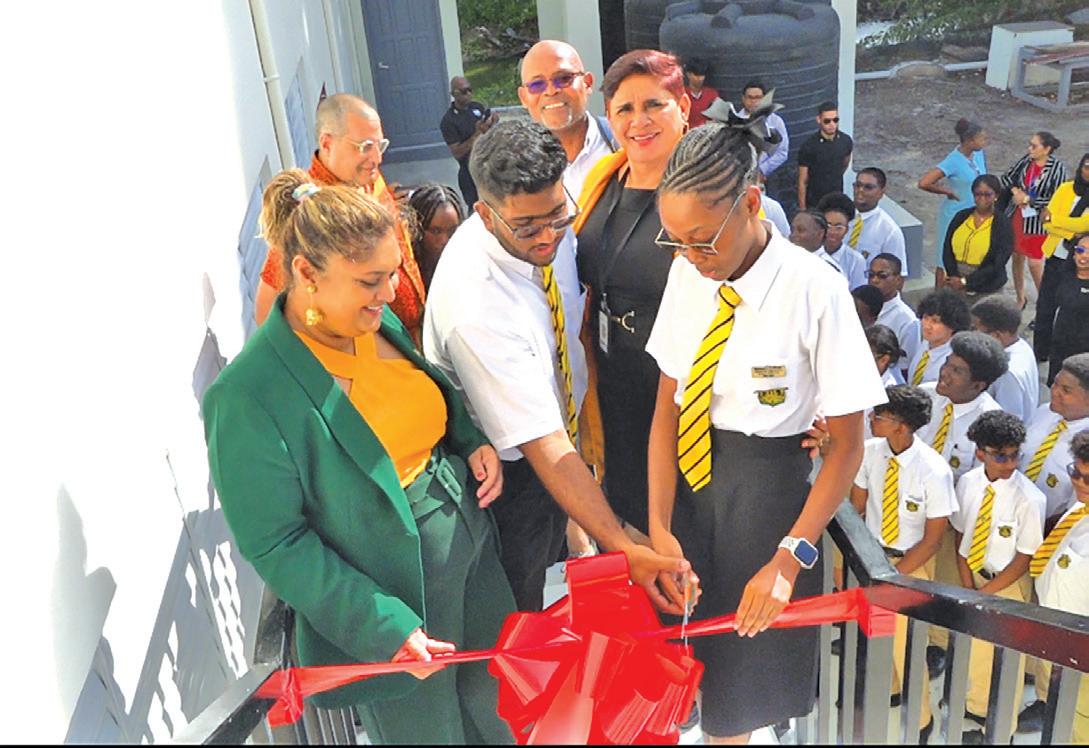 Education Minister Priya Manickchand alongside Queen's College students and staff at the ribbon-cutting exercise