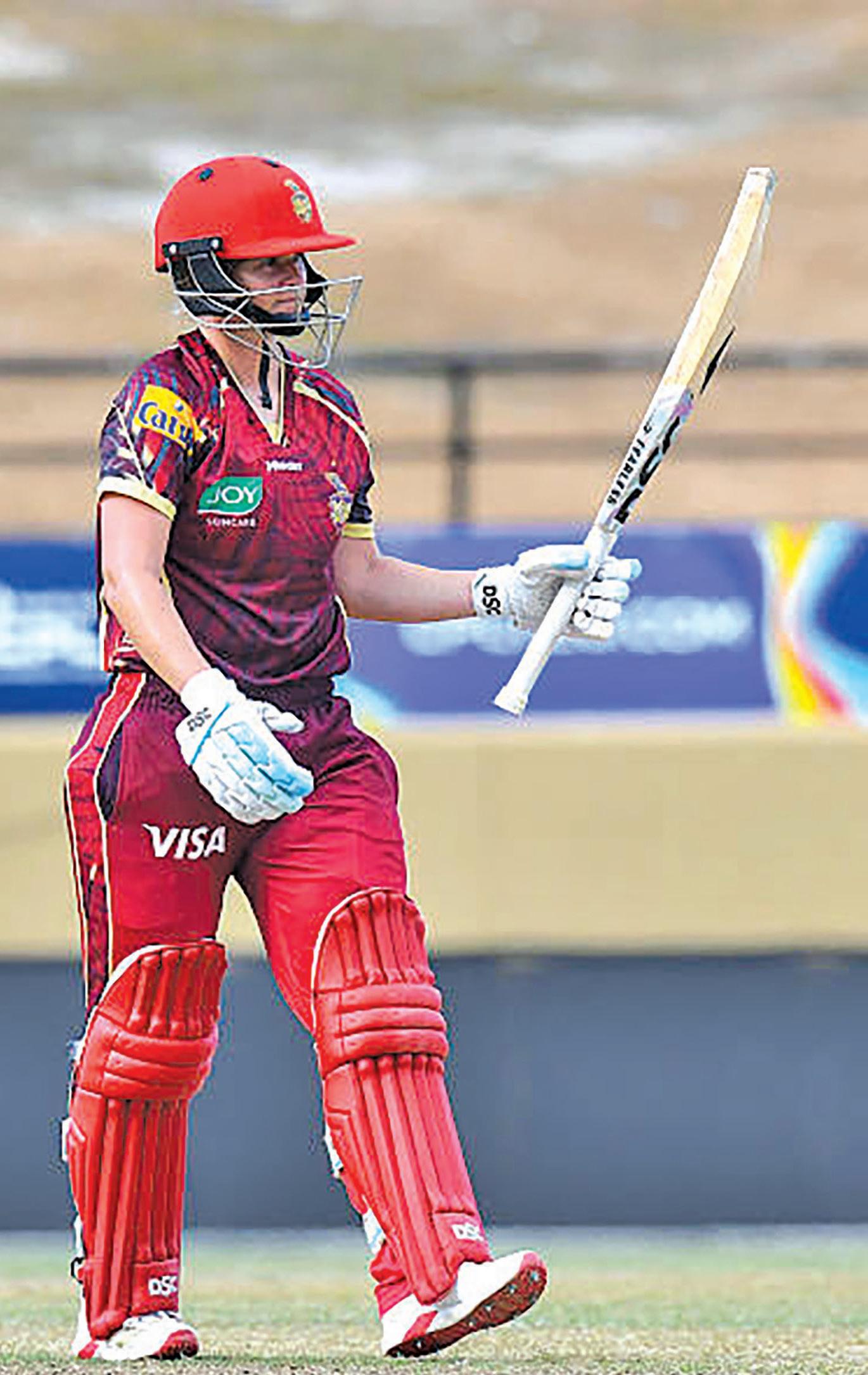the occa- sional loose delivery. At the halfway mark, TKR Women were 60 for 2, with Jonassen and James firmly in control. Their partnership was broken shortly after when Aaliyah Alleyne produced a clever delivery to dismiss James, who scored 17 off 21 balls, leaving TKR at 66 for 3 after 11 overs. Jonassen, however, remained unfazed.
