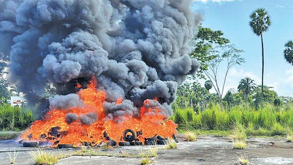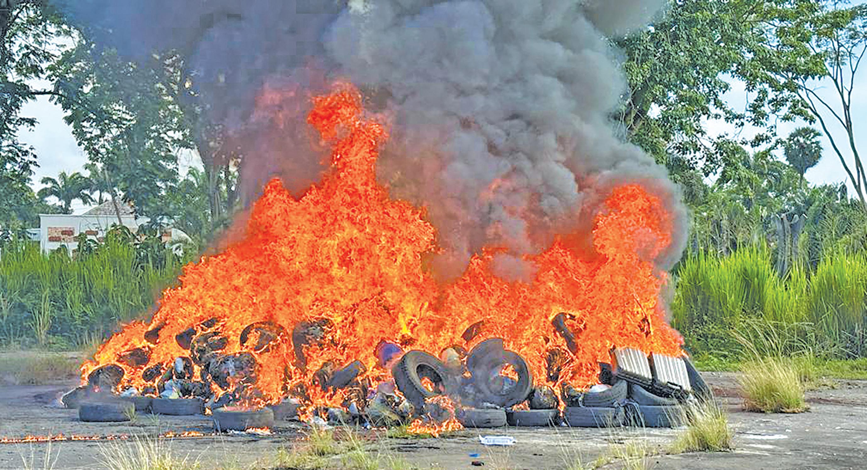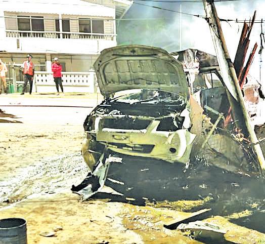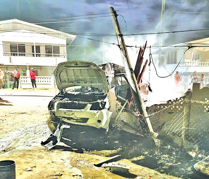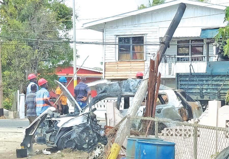 A fire tender from the Mahaica Fire Station responded to the scene and put out the blaze. As a result of the impact, the telephone and electric cables were destroyed.
