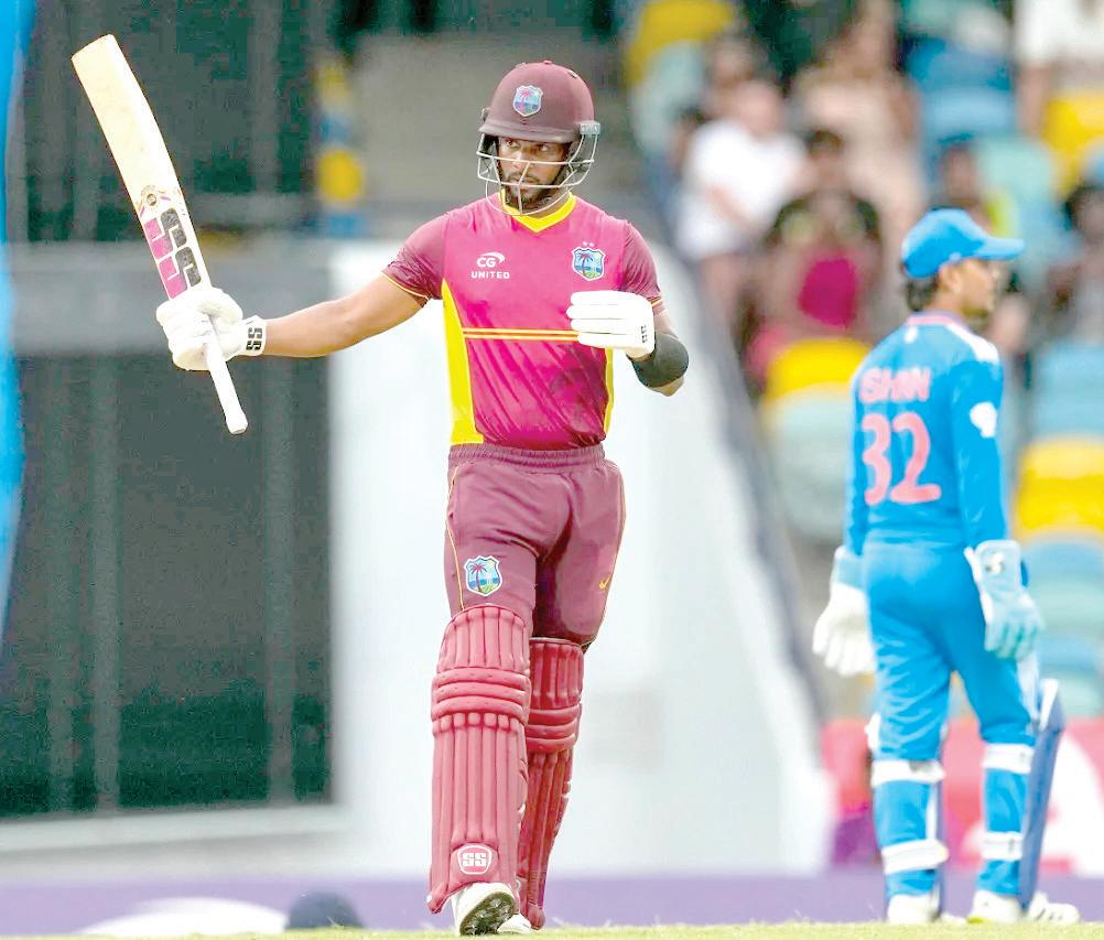 Inserting India in, who had rested Rohit Sharma and Virat Kohli, the hosts made a stunning comeback with the ball to roll them out for 181 inside 41 despite a solid 90run opening stand driven by Ishan Kishan’s second succes sive half-century of the series. On a slow surface that offered both turn and extra bounce, West Indies overhauled the sub-par target with more than 13 overs to spare, on the back of a steady 91* stand between Hope (63*) and Keacy Carty (48*) and a contrasting open ing partnership worth 53.