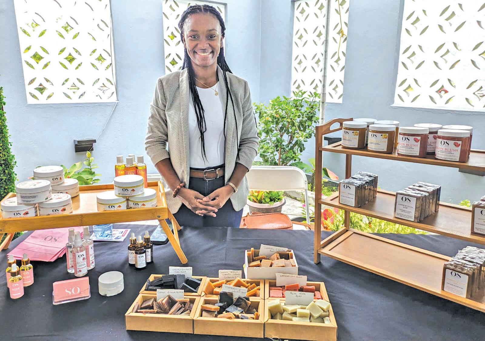 Odela Joseph, founder of Ojay Skin, showcased her line of handmade soaps during the Small Business Expo being held at the Arthur Chung Conference Center (ACCC) on Saturday (Pooja Rambaran photo)