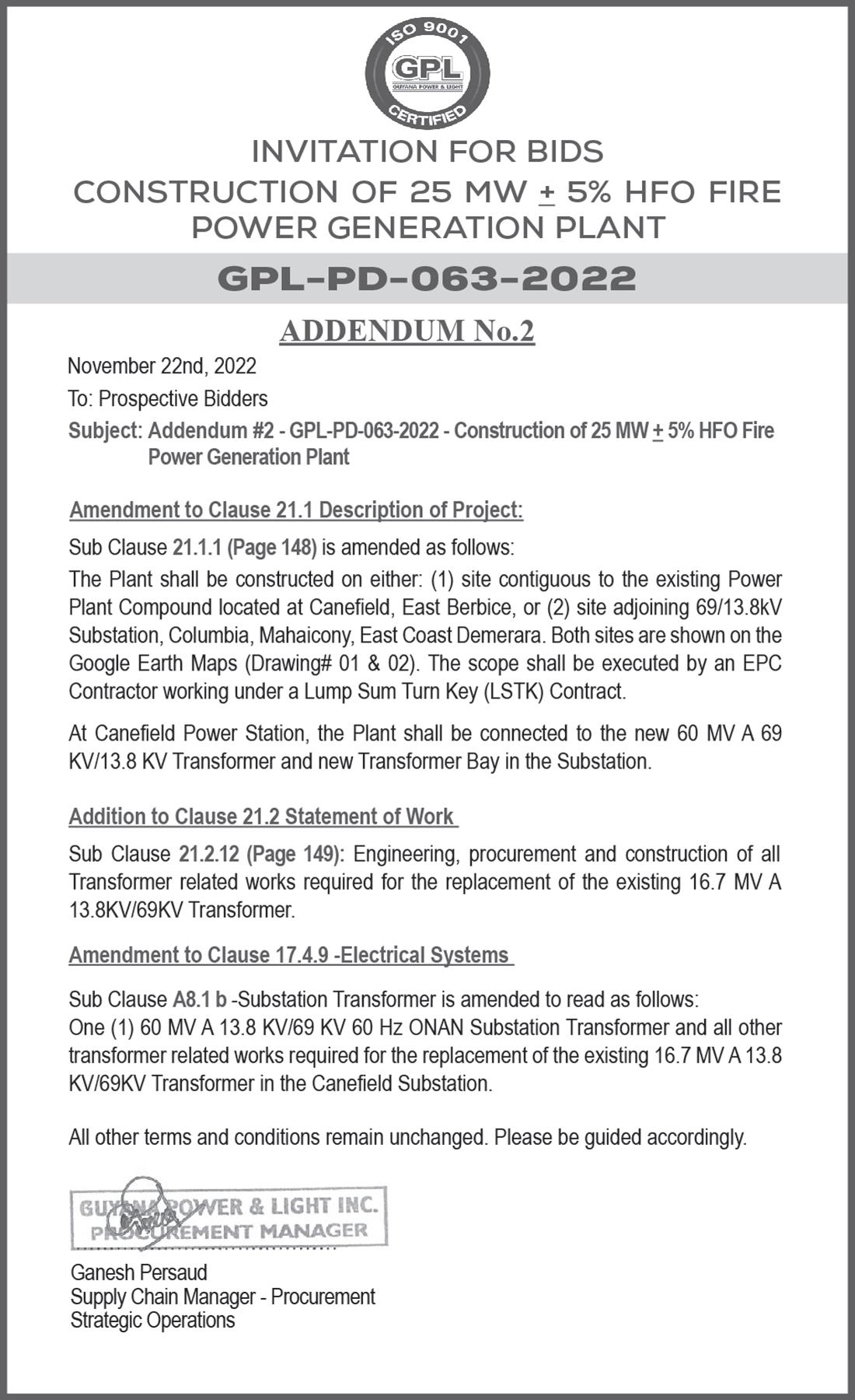 The Government has officially signed a contract with CH4 and Linsayca, for Engineering, Procurement and Construction Services for the US$759 million Integrated Natural Gas Liquid Plant & 300-Megawatt Combined Cycle Power Plant at Wales, West Bank Demerara (WBD).