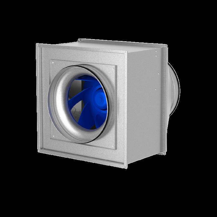 IRE er utstyrt med 50 mm varme- og lydisolasjon som gjør den ideell for håndtering av kald luft. Designet for å tåle høyt trykk. Har F-hjul. IRE er tilgjengelig med både AC- eller EC-motor.