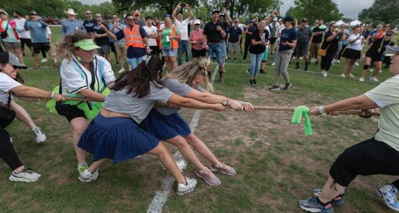 This great outdoor event is perfect team building fun! Each team consists of three men and three women. Each team will compete in six field activities. In case of inclement weather, the challenge will not be rescheduled.