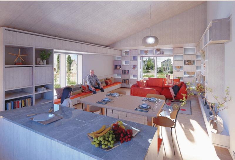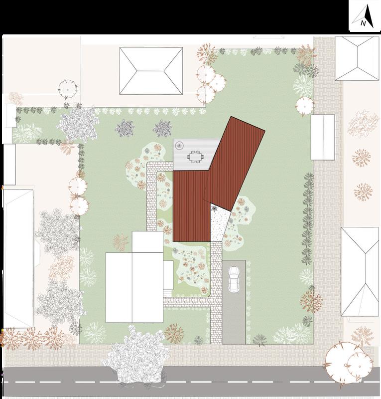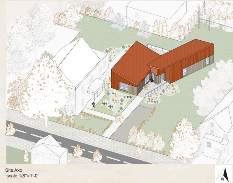 This accessory dwelling unit is intended for a university student at theUniversityofSouthernMainein Portland.Herliferequiresfocusand calm, yet she values quiet connection with nature Hidden Horizons explores the balance betweenvisibilityandconceal Aligned with site lines, the ADU frames key views, protects privacy, and uses topset geometry to respondtosunandlandscape.