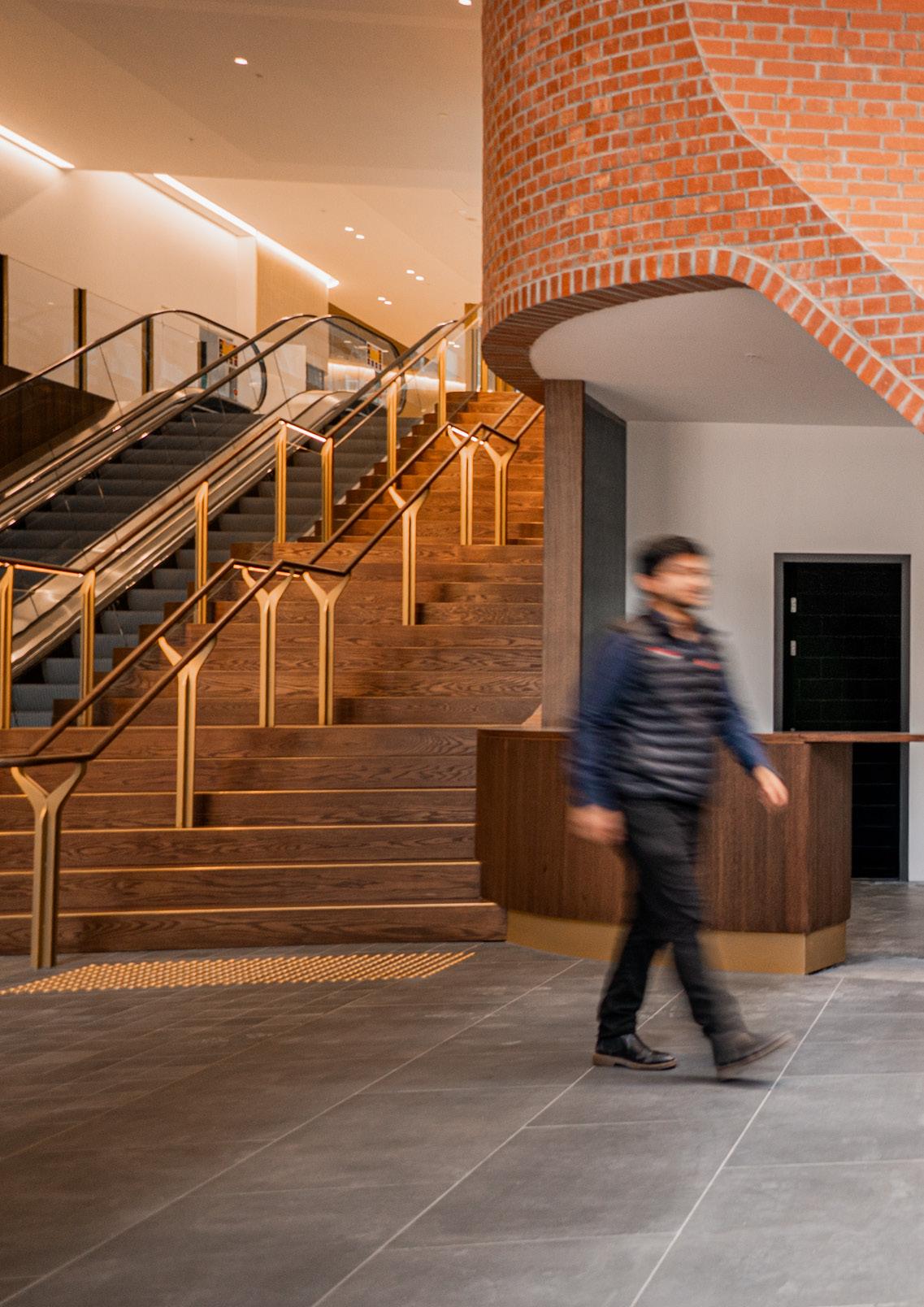 This one’s entering the home stretch! Balmain Street civil works are moving along, the revolving door is in its final rounds of testing, and the façade is sparkling after a full clean. Defects are being zipped up via ropes, tenancy floors gleam after their final clean, and the upper floors are being defected. The Ground Floor lobby, with its Spotted Gum timber and stone walls, looks absolutely sensational.