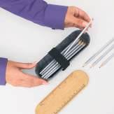 Zylindrisches Etui aus recyceltem Filz mit Reißverschluss und passendem Reißverschlusszug.