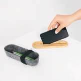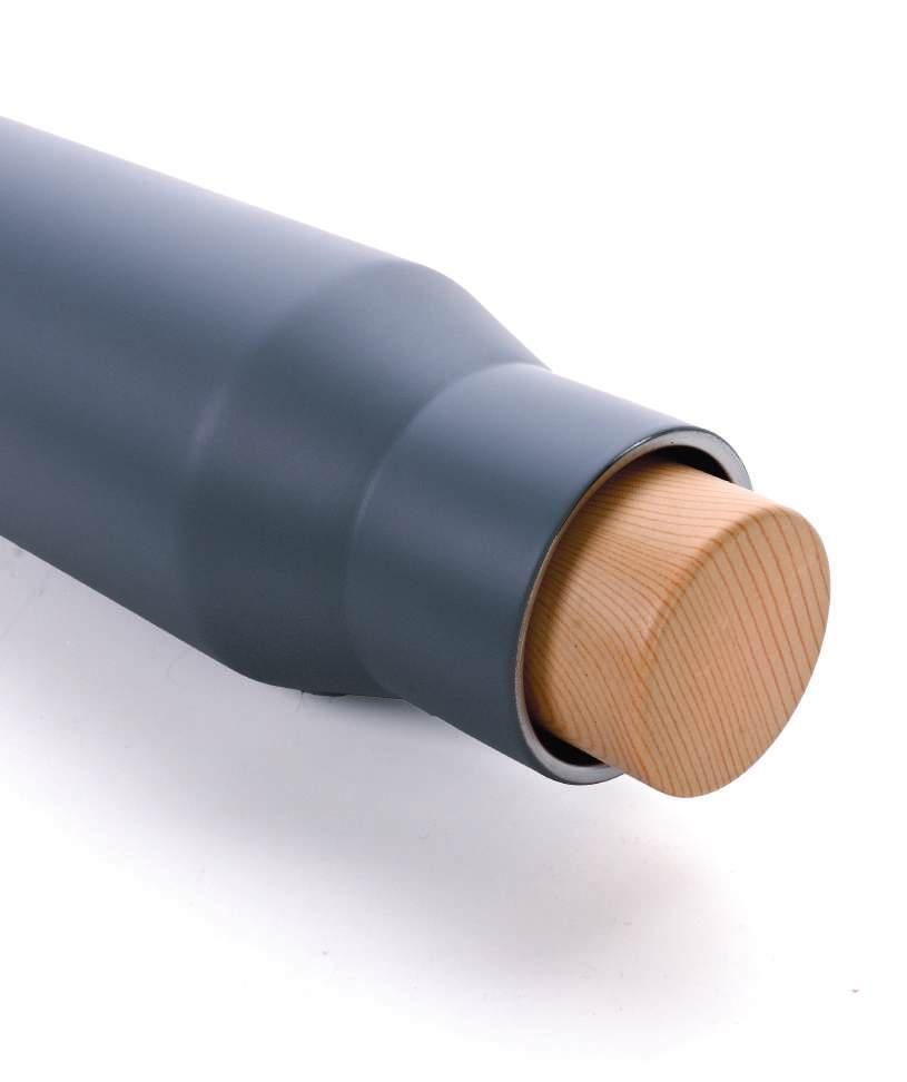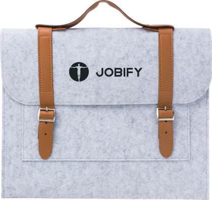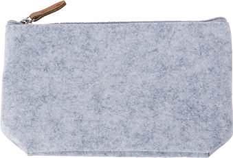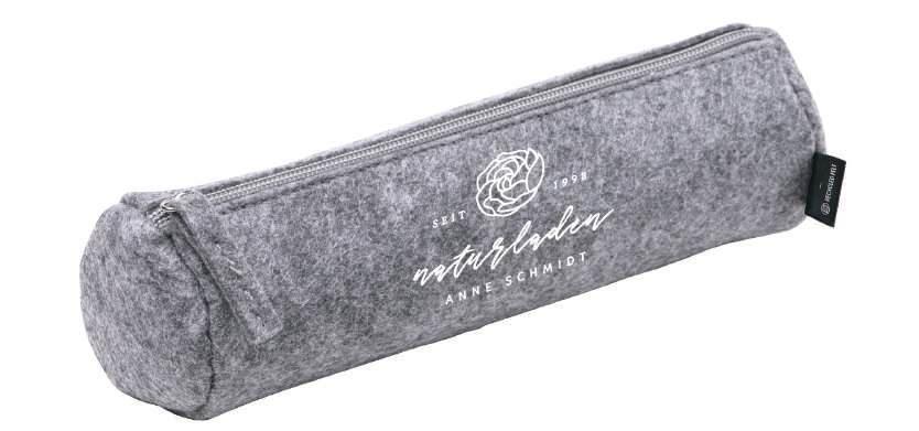 Zylindrisches Etui aus recyceltem Filz mit Reißverschluss und passendem Reißverschlusszug.