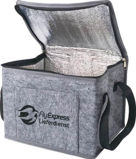 Praktische Kühltasche mit Frontöffnung sowie einer zweiten oberen Öffnung. Innennetz zum Verstauen, Tragehenkel und wasserabweisendes, hochwertiges recyceltes Polyestergewebe zeichnen diese Coolerbox aus.