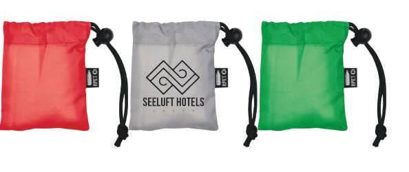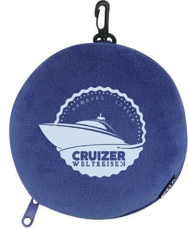 Der perfekte Reisebegleiter: Die anpassbare Innenmaske mit zwei passenden Gummibändern sowie die gepolsterte und faltbare Kopfstütze sorgen für Komfort und Ruhe. Mit Außentasche und Karabinerhaken. Aus weichem RPET-Material hergestellt.