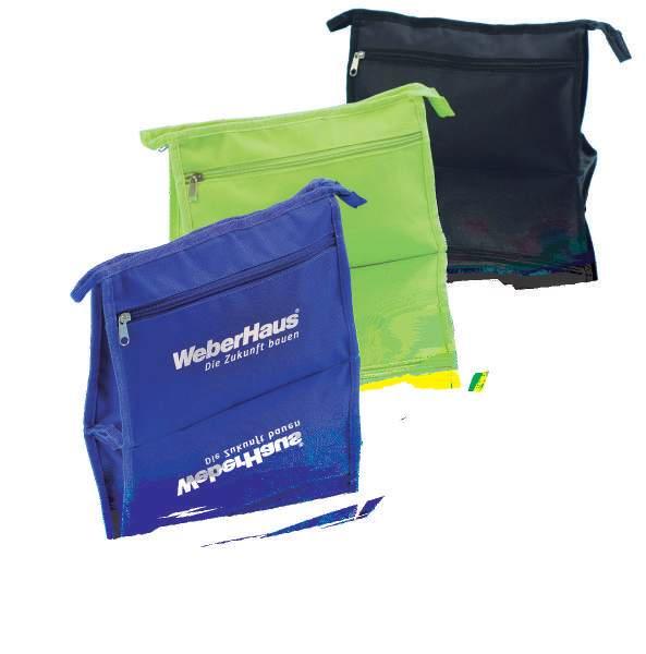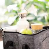 Vielseitige Kühltasche aus RPET mit großem gepolstertem ReißverschlussHauptfach sowie Steckverschluss für verschiedene Tragevarianten. Abnehmbarer längenverstellbarer Tragegurt.
