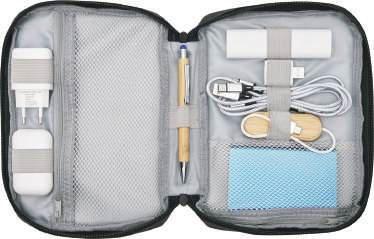 Weiches 150D Polyester für Dokumente und Smartphones. ReißverschlussHauptfach, Netztasche vorne. Verstellbarer schwarz-weißer Schulterriemen.