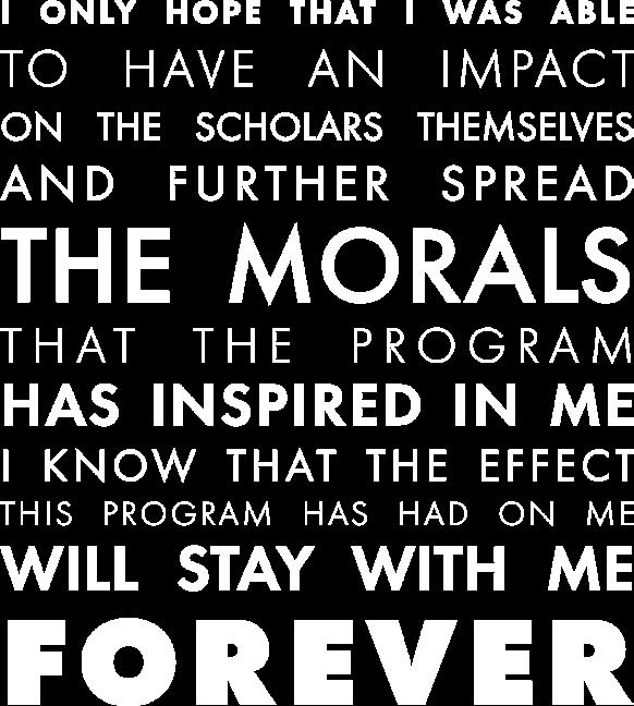 striving for excellence, academic curiosity, teamwork, and more. When the Scholars see the mentors modeling these traits and getting excited about school, the Scholars are inspired to do the same.