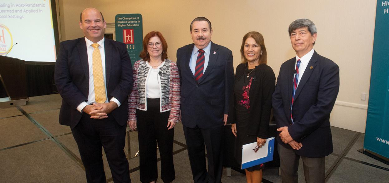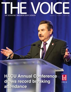 The Hispanic Association of Colleges and Universities ended 2022 with record breaking attendance at its 36th Annual Conference, “Championing Hispanic Higher Education Success: Rebuilding a More Resilient and Inclusive America.” We were delighted to have hosted over 2,500 attendees to our first in-person conference since 2019. This year student attendance was more than 700 with many being sponsored by their institutions, corporate partners and sponsors to participate in HACU’s ¡Adelante! Leadership Institute, a hallmark event of our conference. Highlights of the conference are featured in a special section on page 10, including honoree recognitions and the induction of two new members to HACU’s Hall of Champions.