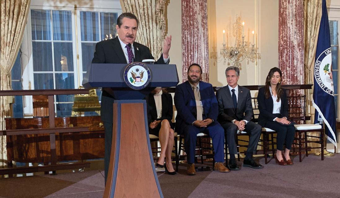 Days after the conference in San Diego, HACU was in Washington, D.C. for a ceremonial event in honor of a historic MOU signing with the U.S. Department of State. Secretary Antony J. Blinken and I renewed an MOU that was first put into place in 2001. Following that event, HACU planning meetings were held in Salamanca, Spain in preparation for our 14th International Conference to be held in Spain on June 3-5, 2024. Photo highlights of both events are included in this issue. On page 14 is a special report released by HACU that includes a summary of findings from a Texas Regional Convening on STEM Education held in San Antonio, Texas in the fall.