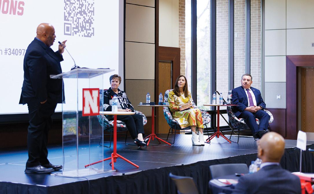 HACU President and CEO Antonio R. Flores was among the panelists at the University of Nebraska–Lincoln’s Office of Diversity and Inclusion fourth-annual State of Diversity on Oct. 26, 2022, in Lincoln, Neb. The State of Diversity provided the UNL campus community with critical diversity updates, highlighted the achievements and successes of inclusive excellence at Nebraska. The panel session addressing diversity in higher education was moderated by Jamal Watson, Ph.D., editor, Diverse: Issues in Higher Education. Panelists joining Flores included: Carrie Billy, J.D., president and CEO, American Indian Higher Education Consortium and Lynn Pasquerella, Ph.D., president, American Association of Colleges and Universities.