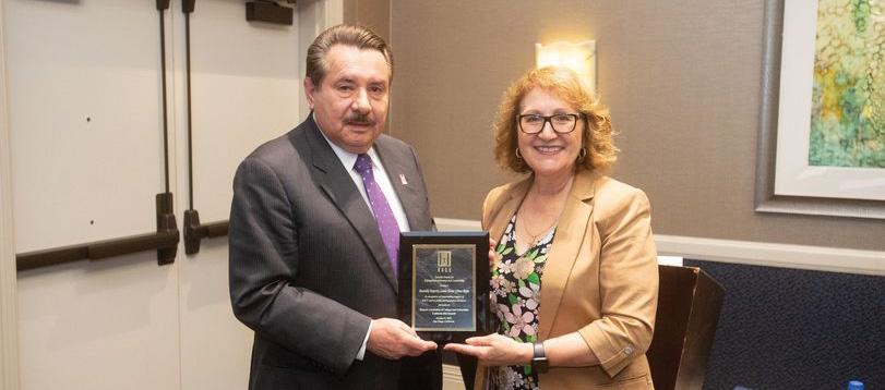 HACU President Antonio Flores presents Special Award for Exemplary Advocacy and Leadership to Assembly Majority Leader Eloise Gomez Reyes