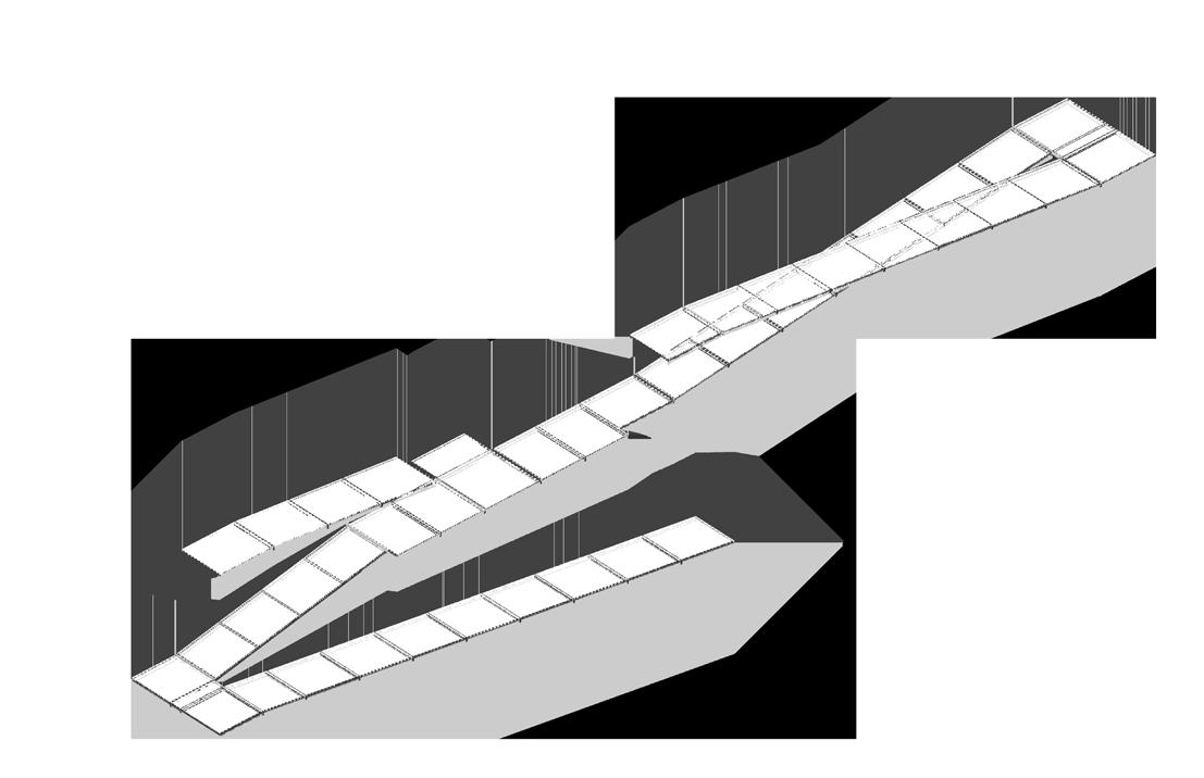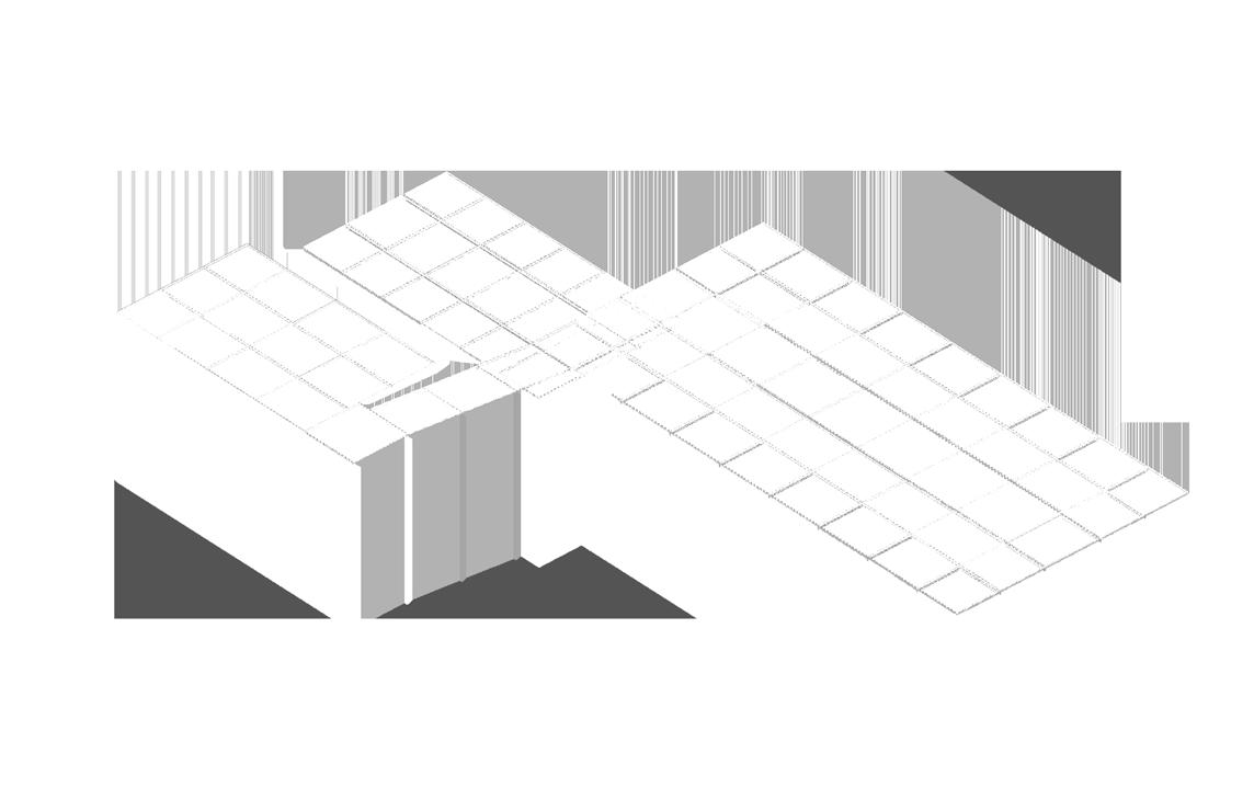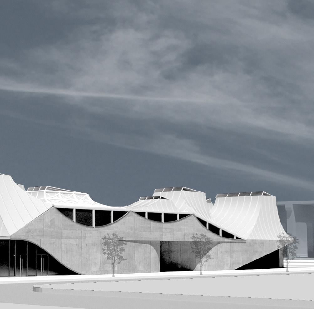 The design explores an approach where the roof, rather than walls, serves as the primary spatial definer. Descending roof planes compress space to create zones of intimacy and shelter, while elevated sections expand to accommodate collective gathering. This play with vertical thresholds creates a spatial dialogue—articulating programmatic flexibility while maintaining rhythmic consistency across the composition.