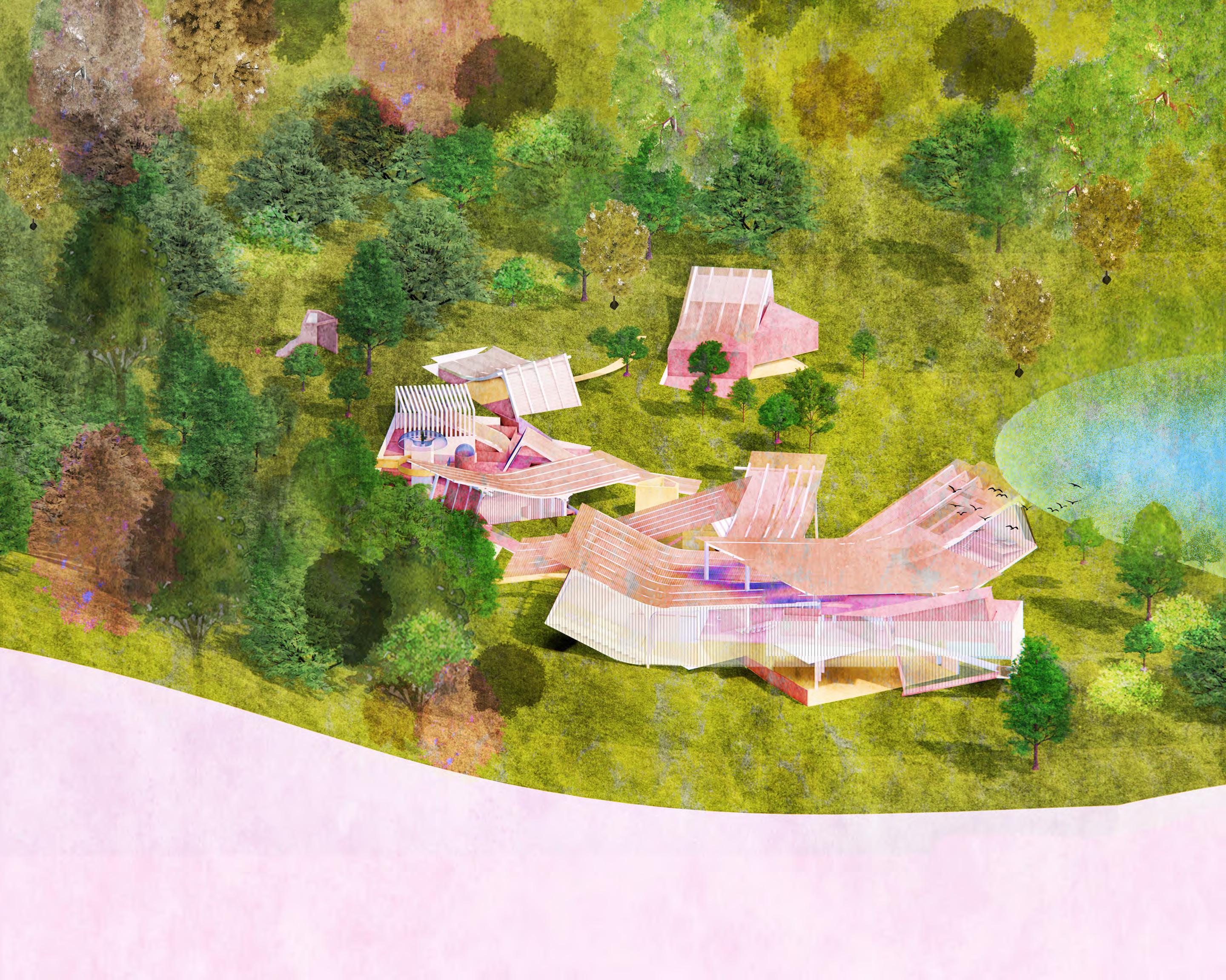 In this project, the architectural building emerges not as a singular object, but as nodes, paths, and landmarks operating within a broader field. It serves the field, rather than standing apart from it. The absence of Black Mountain College becomes an active condition—one that defines the field as a space of potential, memory, and transformation. Within this context, architecture no longer merely occupies the field; it is the field. It extends through connections, circulations, and moments of encounter. Form becomes diffuse, relational, and embedded—less about enclosure, and more about creating conditions where learning, exchange, and becoming can unfold.
