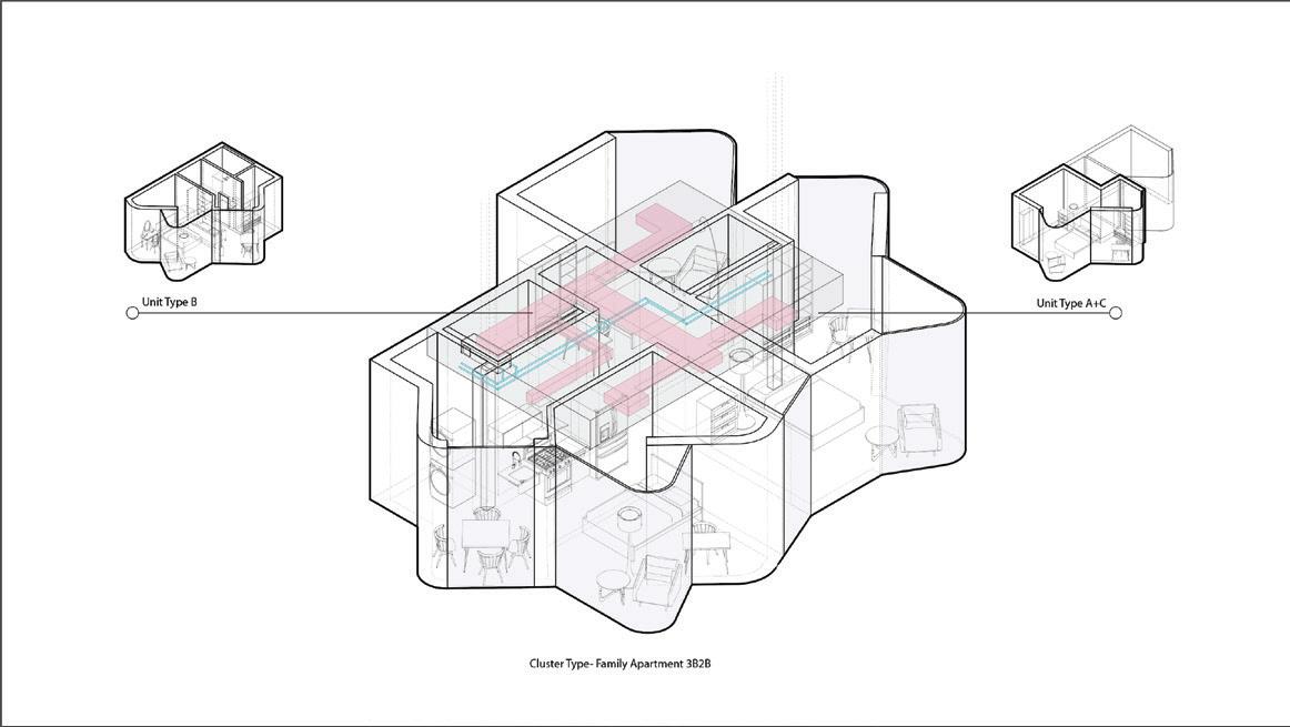 Unlike nearby multi-housing projects, this design removes obvious barriers between units to foster community connections. Though physical divisions are minimal, privacy is maintained through geometric design and spatial organization. This creates a duality where spaces function as both public domains and private sanctuaries. The layout ensures full accessibility, allowing residents to navigate freely while experiencing varying degrees of community and seclusion as needed.