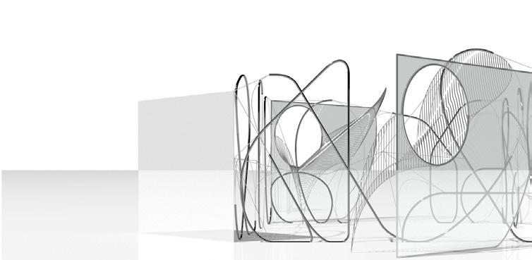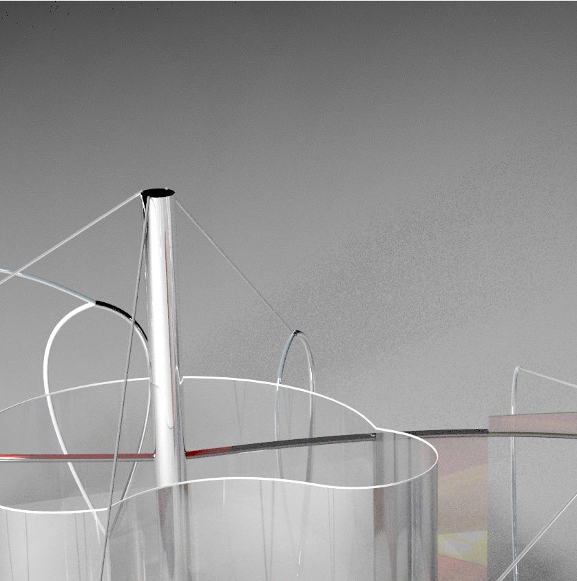 Architecture exists not as static form but as continuous process. In this case study, a calculus of relationships manifested through spline geometries where singular alterations propagate throughout entire systems with measurable impact. The curved steel tube structure, once confined to the periphery, now penetrates the center and projects outward, creating interstitial spaces held in dynamic tension. A singular cable weaves throughout the space, connecting what appears as fragmented elements into an integrated whole—a system where adjusting any single point necessitates recalibration of the entire assembly, demonstrating that nothing exists in static isolation.