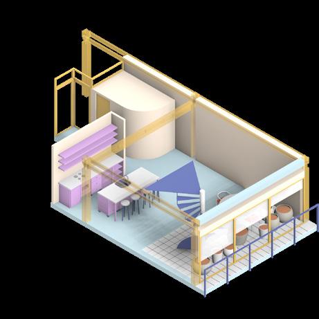 Das Ziel dieses Projekts war es, ein Baukastensystem zu entwickeln, das ein neues Image und einen flexiblen räumlichen Rahmen bietet, in dem dieses heterogene Milieu zusammenkommt, um eine zirkuläre Lebens- und Arbeitsweise zu fördern.
