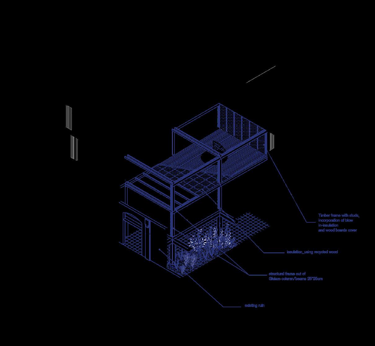 We wish this alternative model to suport a growing network of similar cooperative projects in the post-industrial yards of Berlin. It could emerge as en alternative typology to change neighborhoods with similar characteristics and critical conditions. It is needed to imagine new forms of dwelling that could answer the question “ How can we live together? “,as well as, introduce new forms of ownership and sustainable construction models, in order to approach a solution to the housing crisis, escaping the speculative real estate market and future gentrification in the area. By empowering the local scale, oppotunities can arise for autonomy,