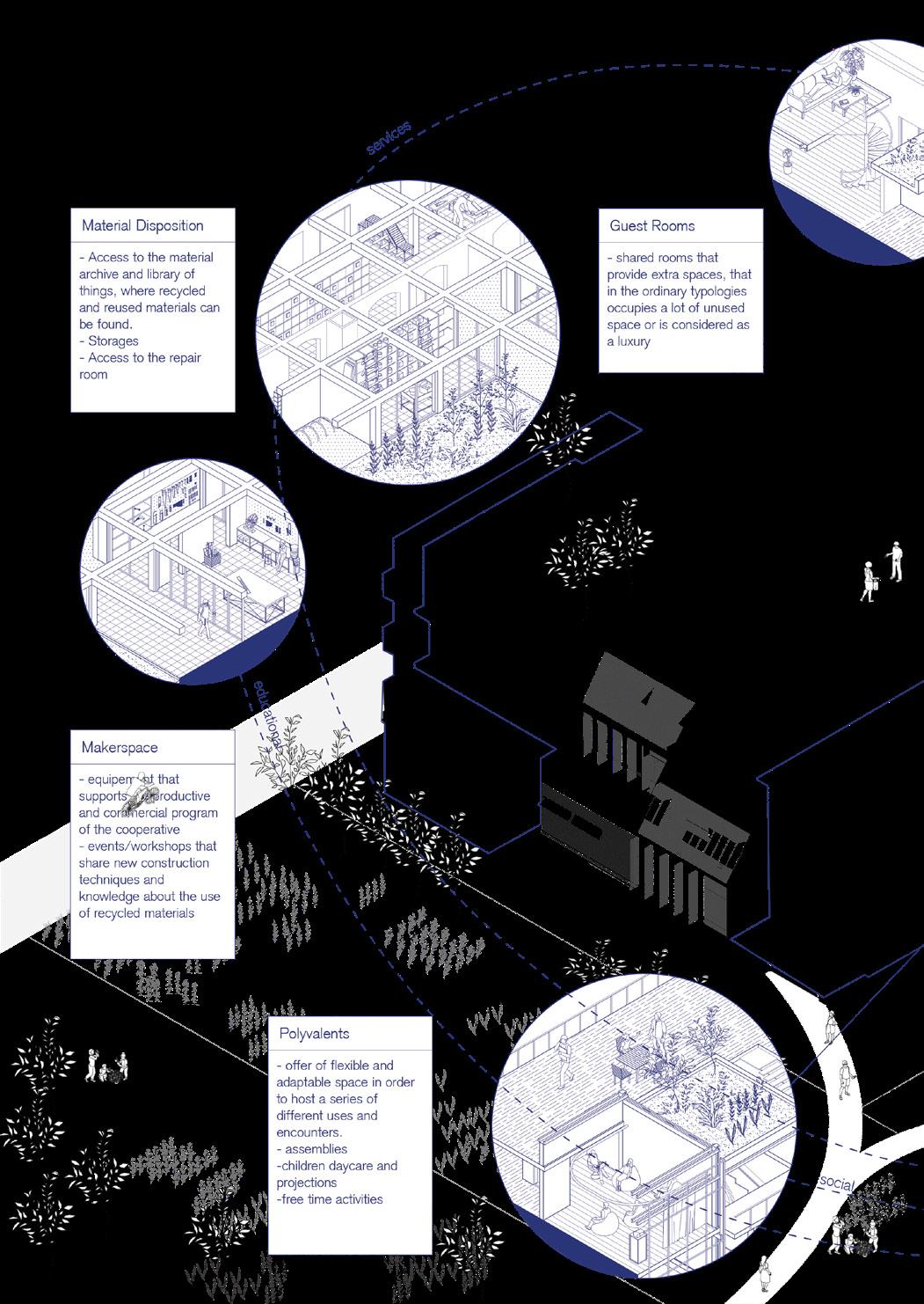 Analysis maps/ Site analysis Typologies 01-02/ Materiality diagrams / Research on co-ops,materials and materials cycles / Axonometric diagrams,details and view/ Cohab configurator components-variations/ Plans/ Text/ Book editing-production