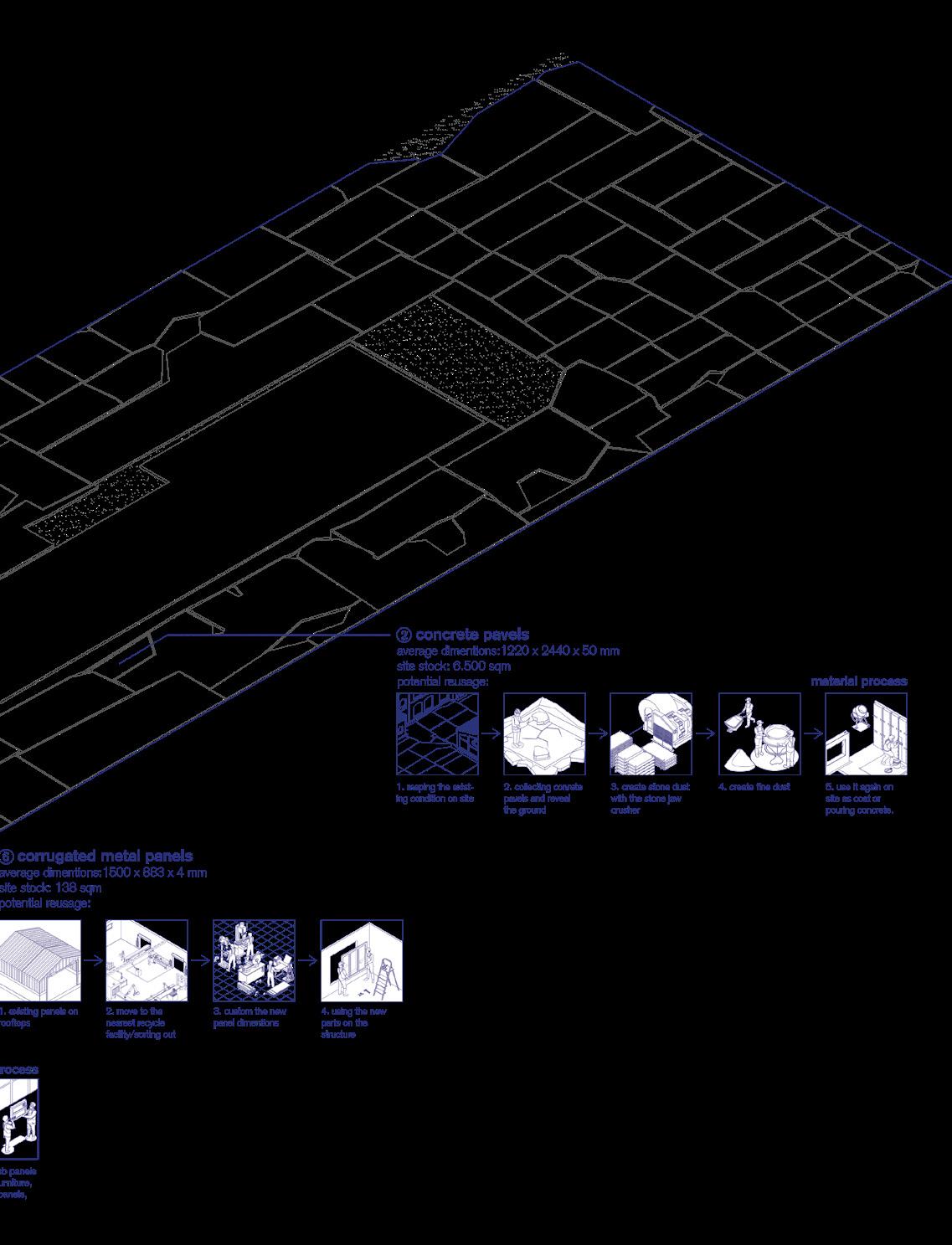 History Maps/ Texts/ Site Analysis- Typologies 05-06 / Research on co-ops,materials and materials cycles/Material disposition diagrams/Exploded Diagrams/ 3d modelling/ physical model/ Sections