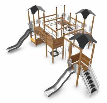 Les enfants peuvent glisser, grimper ou s'adonner à des activités plus calmes et transformer la maisonnette en magasin, en bateau pirate ou en tout ce que leur imagination leur suggère. Les installations standard sont disponibles en trois couleurs différentes, avec des poteaux en bois ou en acier et deux options d'ancrage. Pour d'autres options de couleurs et d'ancrage, veuillez contacter votre conseiller clientèle régional.