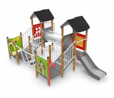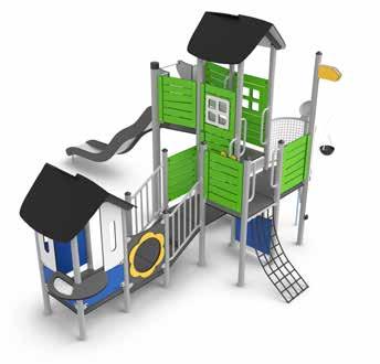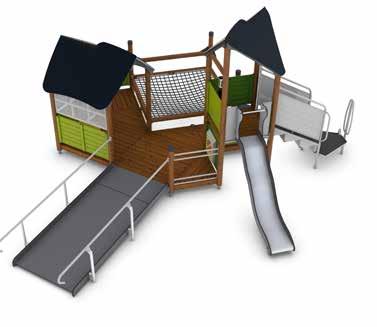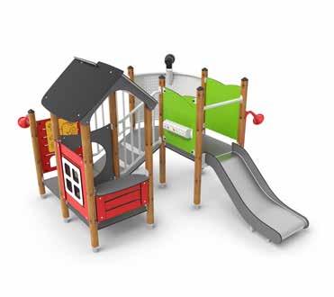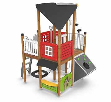 Kinder können rutschen, klettern oder sich mit ruhigeren Aktivitäten beschäftigen und das Spielhaus in einen Laden, ein Piratenschiff oder was immer ihre Fantasie hervorbringt, verwandeln.