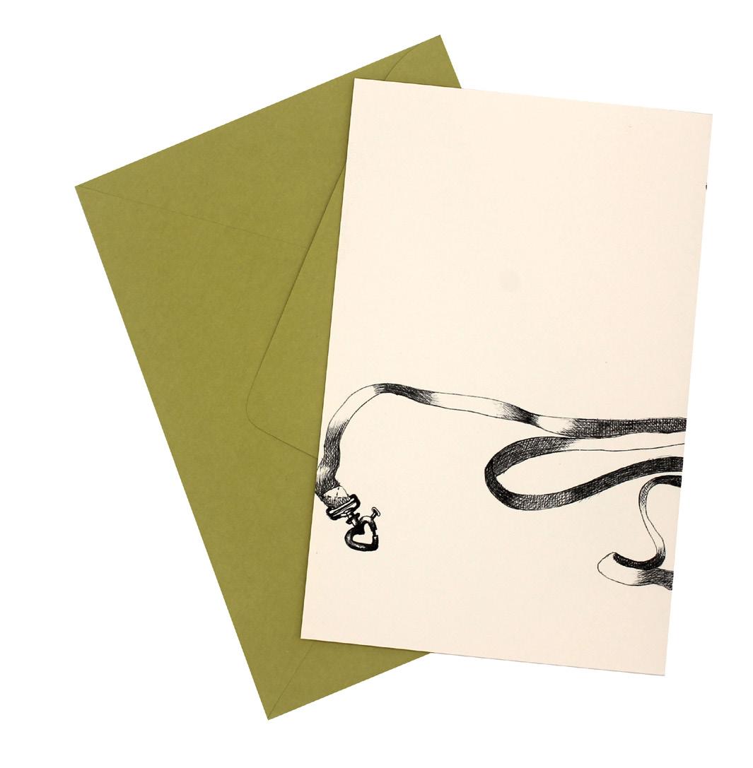 Printed on classic cream, 216 gm. 25% cotton. Small metal charm. Colored envelope/cellophane envelope
