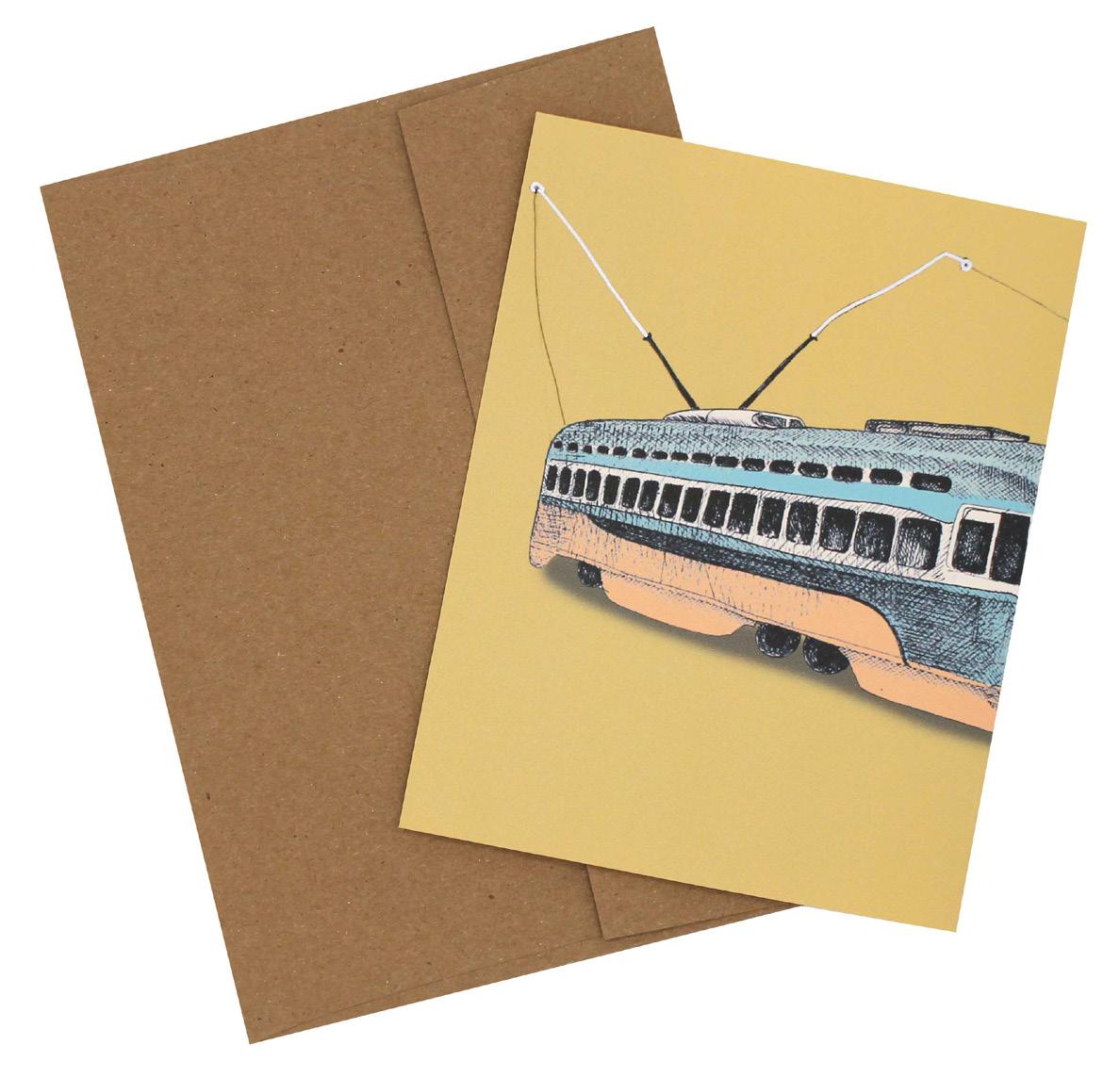 SF Street Car CCC_06 10 x 7 inches (open) 5 x 7 inches (closed) Printed on classic cream, 216 gm. 25% cotton Colored envelope/cellophane envelope Suggested retail price: $6.50 Wholesale price: $3.60 Copyright © 2026 Hairy Ear Prints. All rights reserved.