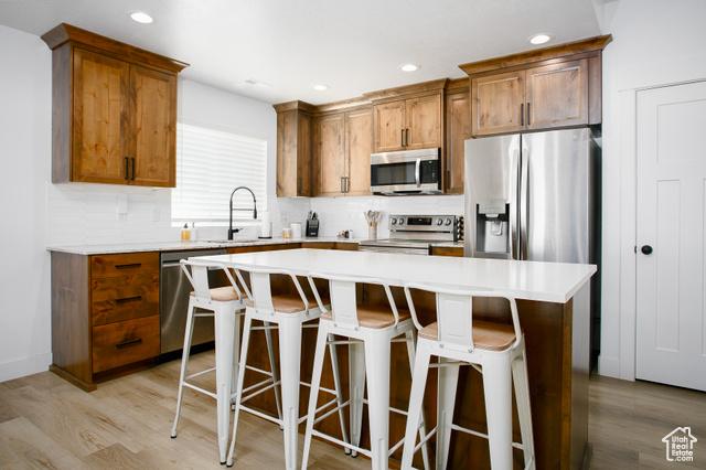 Kitchen featuring stainless steel appliances, a sink, Kitchen finishes, Washroom dryer