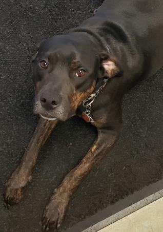 8. Mabel, morale officer, enjoys roaming the backyard at home, sitting for hours on the back porch and coming to the office to greet visitors and encourage the staff. Mabel loves getting treats and taking long naps in her mommy’s office in the afternoons.