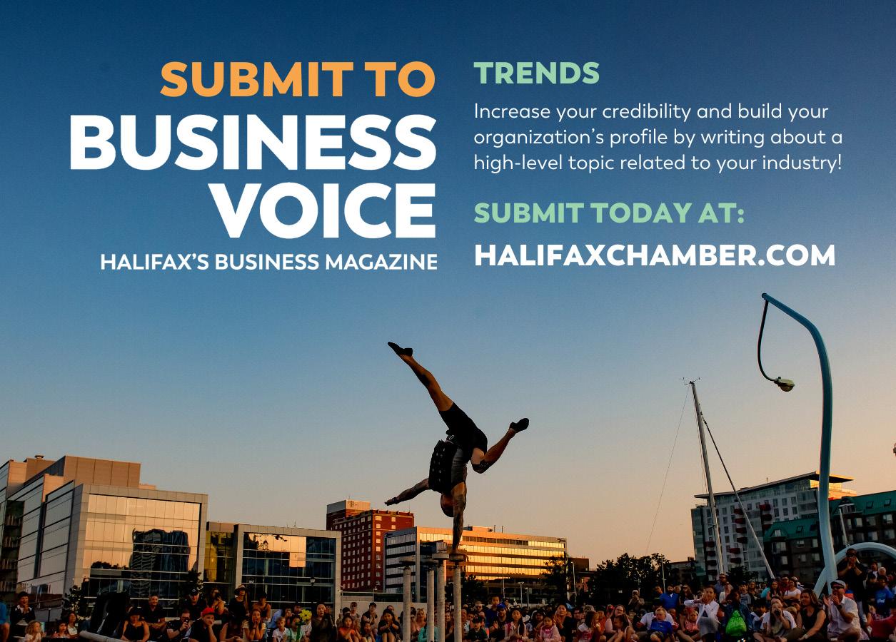 Business Voice is published 8 times a year for members of the Halifax Chamber of Commerce and Metro Halifax’s business community. Views expressed in Business Voice are those of the contributors and individual members, and are not necessarily endorsed by, or are a policy of, the Halifax Chamber of Commerce.