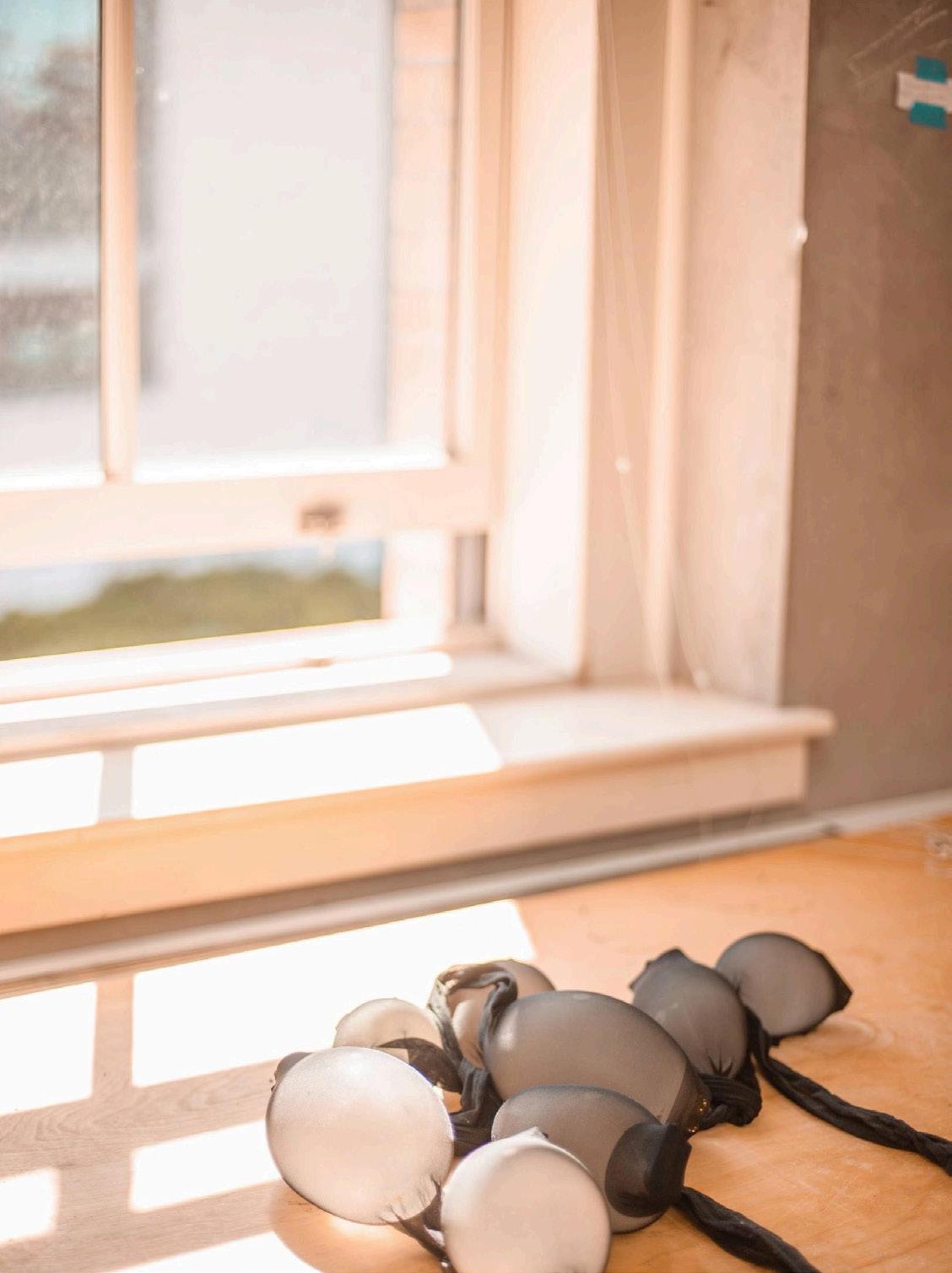 Material List - Recycled walls of the O(U)R Experience, recycled paper, balloons, LED lights, nylon tubes, foam padding, paint