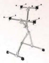 The Rototom® Set is constructed with a rapid-tuning system, allowing for instant tuning in a range of more than one octave. The Rototom® Set does not have a traditional drum shell. Instead, the drumhead and counterhoop are mounted on an aluminum frame (spoke) through which the tension rods are attached to a bottom frame which is mounted on a threaded center bolt. Rotating the frame raises or lowers the tension, thus raising or lowering the pitch of the drum. Their versatility has led to the widespread use of Rototom®s in live situations, recording studios, percussion ensembles and symphonic Concert music. Rototom® Sets feature two or three Rototom®s mounted on a single stand for versatility and convenience.