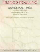 CLAUDE DEBUSSY Quatuor pour 2 violons, alto & violoncelle DURAND DD 16258 Code barre couleur du fond bleu partition 9HTKAOE*ajdbbd+ PANTONE 719 C_PANTONE 1945 C_BLACK - Ricordi DF 15722_Villa Lobos_Copertina Alberto E. GINASTERA DANZAS ARGENTINAS pour piano ISMN 979-0-044-05773-3 9HTKAOE*afhhdd+ DF 13004 Maurice DURUFLÉ MESSE « CUM JUBILO » à une voix pour baryton solo, chœur de barytons, orchestre & orgue Réduction pour chant & orgue par l’auteur ALEXANDRE TANSMAN EN VINGT-CINQ MORCEAUX POUR GUITARE ESCHIG Alexandre Tansman © Les Amis d’Alexandre Tansman, Paris Tous droits réservés. All rights reserved • Pièce en forme de Passacaille • Suite in modo polonico 1. Entrée 2. Gaillarde 3. Kujawiak (Mazurka lente) 4. Tempo di Polonaise 5. Kolysanka n° 1 (Berceuse d’Orient) 6. Rêverie 7. Alla Polacca 8. Kolysanka n° 2 9. Oberek (Mazurka vive) • Ballade (Hommage à Chopin) • Hommage à Chopin 1. Prélude 2. Nocturne 3. Valse romantique • Quattro tempi di Mazurka • Variations sur un thème de Scriabine • Hommage à Lech Wa�e˛sa THE BEST OF Alexandre Tansman en vingt-cinq morceaux pour guitare Alexandre Tansman in twenty-five pieces for guitar Édités par Edited by Frédéric Zigante Maurice RAVEL MA MÈRE L’OYE cinq pièces enfantines pour piano à quatre mains 9HTKAOE*ahejja+ DR 7746 Erik Satie Intégrale des œuvres pour piano Complete Works for Piano Volume 1 éditées par / edited by Robert Orledge Cette nouvelle édition de l’intégrale de la musique pour piano d’Erik Satie, en trois volumes, est une version totalement révisée et regravée de l’édition centenaire de son œuvre pianistique. Elle revient aux sources manuscrites et premières éditions des pièces de Satie, et offre aux interprètes des textes musicaux fiables et pertinents. Ces volumes proposent toutes les pièces pour piano solo, ou en réduction pour piano, publiées par Satie, incluant quelques pièces antérieures inconnues, telles la Petite Sonate que Satie écrivit pour Vincent d’Indy à la Schola Cantorum, et quelques premières versions de pièces très San Bernardo, version d’essai d’Españaña (1913), ou encore les premières versions très différentes de Les Pantins dansent (1914). On trouvera également quelques exemples des différents exercices que Satie exécuta à la Schola entre 1907 et 1912, quelques tentatives supplémentaires d’Enfantines et quelques Sports et divertissements Des indications métronomiques ont été ajoutées afin d’aider les interprètes, de même que certaines suggestions de jeu pour les œuvres relatives à la période Rose+Croix des années 1890, pièces qui sinon pourraient ne sembler que lentes et tranquilles. La notation été envisagée sous l’angle plus pratique possible, sans pour autant négliger le soucis de Satie quant extériorisation de sa pensée musicale sur papier. This new, completely revised and reset centenary edition of Satie’s complete piano music in three volumes has returned to Satie’s manuscripts and first editions to give pianists completely accurate and reliable texts to play from. As well as presenting every piece for piano solo or piano reduction that Satie published, this edition also includes some previously unknown pieces, like the Petite Sonate that he wrote for Vincent d’Indy at the Schola Cantorum, as well as some interesting fi known pieces, like San Bernardo a trial version of Españaña (1913) and the markedly different first version of Les Pantins dansent (1914). In addition, there are examples of the different types of exercises that Satie completed at the Schola between 1905 and 1912, some extra trial Enfantines and some earlier drafts of his Sports et divertissements To help pianists, suggested metronome marks have been added throughout, and there are also some performance suggestions for the Rose+Croix pieces of the 1890s, which otherwise appear to be all quiet and slow. The notation has been made as user-friendly as possible, without detracting from Satie’s concerns about the “exteriorisation” of his musical thought in print. VOLUME 1 Allegro Valse–Ballet (op 62) Trois Gymnopédies The Dreamy Fish The Angora Ox Poudre d’or Tendrement Illusion Le Piccadilly La Diva de l’Empire Erik Satie Intégrale des œuvres pour piano Complete Works for Piano Volume 1 SLB 5960 Volume 3 SLB 5962 Volumes 1–3 SLB 5963 Erik Satie INTÉGRALE DES ŒUVRES POUR PIANO COMPLETE WORKS FOR PIANO VOLUME 1 «Tout le monde vous dira que je ne suis pas un musicien. C’est juste.» “Everyone will tell you that am not a musician. It’s true.” Erik Satie Francis POULENC Gloria pour soprano solo, chœur mixte & orchestre réduction piano & chant SLB 5434 SLB 5425 SLB 5427 SLB 5428 SLB 1739 SLB 1740 Georges Auric en quinze morceaux pour piano