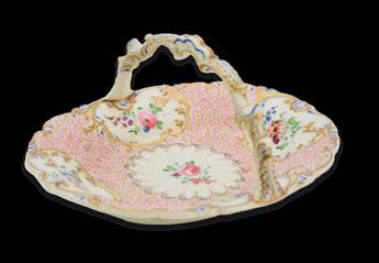 Martin, Hall & Co, London 1892, of lobed oval form with pierced border and engraved base, with beaded rim and handle, all raised on decorative pierced oval foot, 26cm wide, 22cm high, weight approx 17oz
